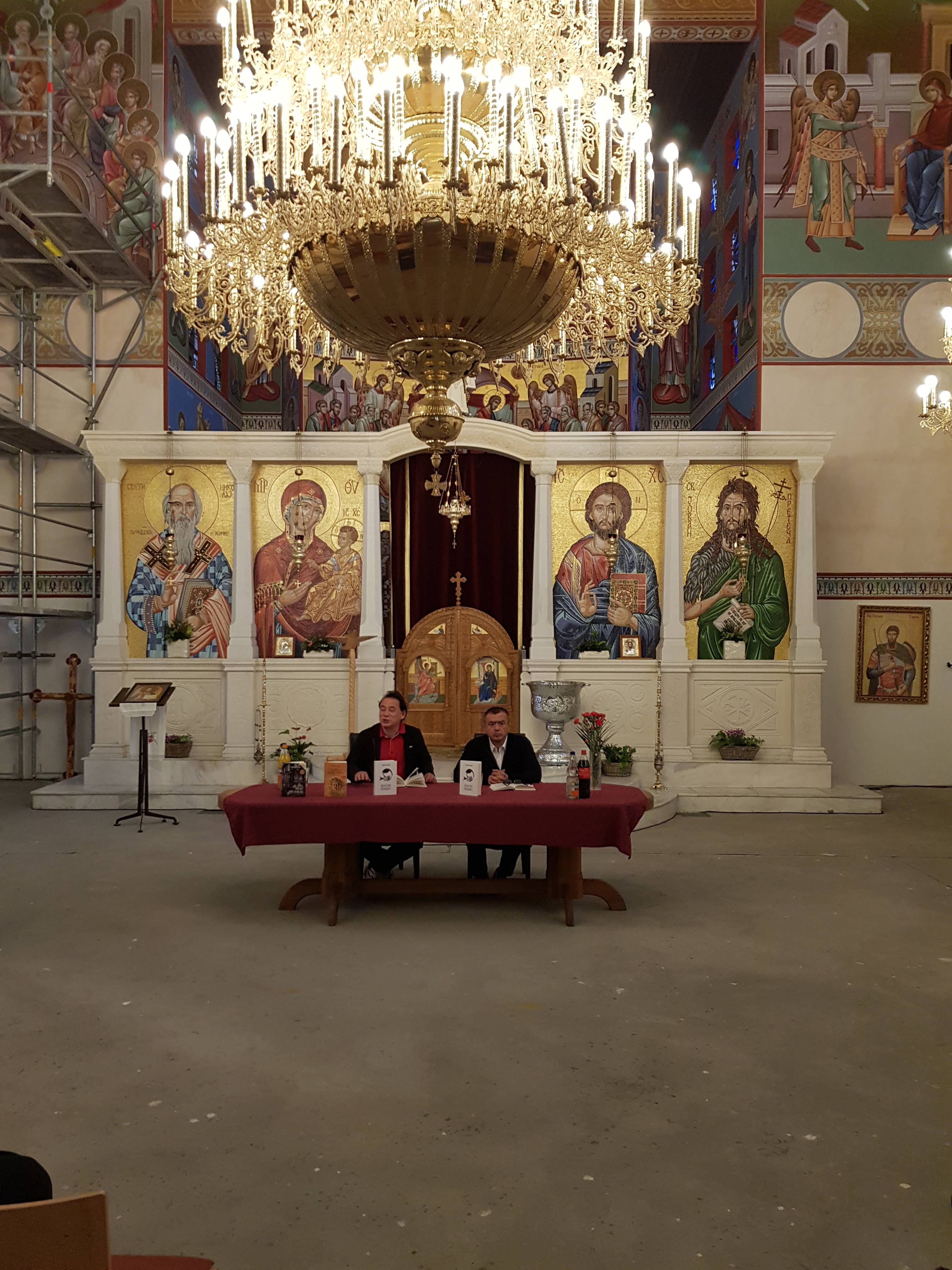 O ove dve knjige govorio je književnik Nenad Šaponja, dok su Vladimir Pištalo i vladika Grigorije vodili unakrsni dijalog – Pištalo je govorio o knjizi BITI S DRUGIM, a vladika Grigorije o ZNAČENJU DŽOKERA.