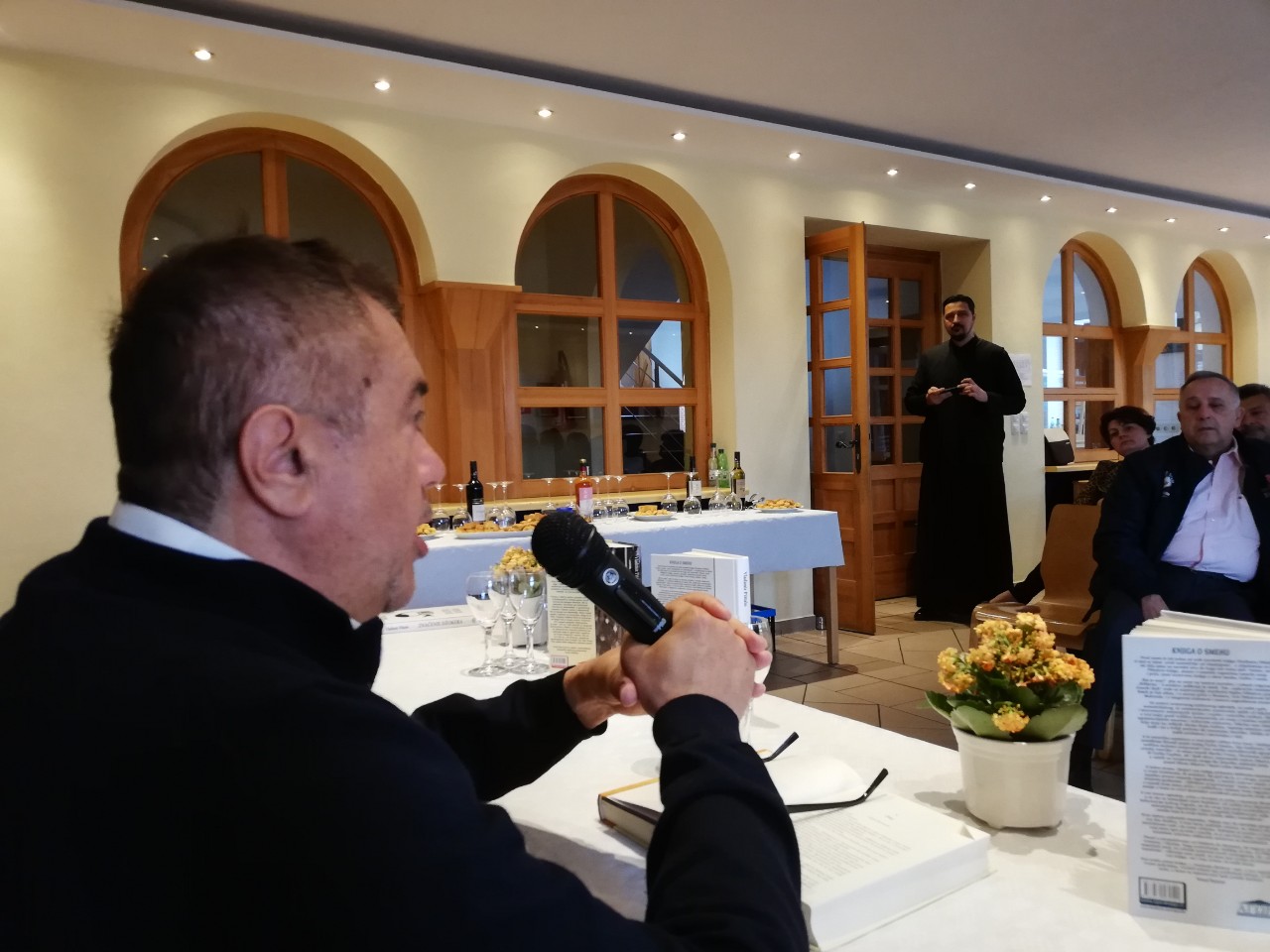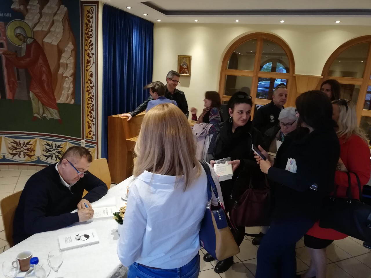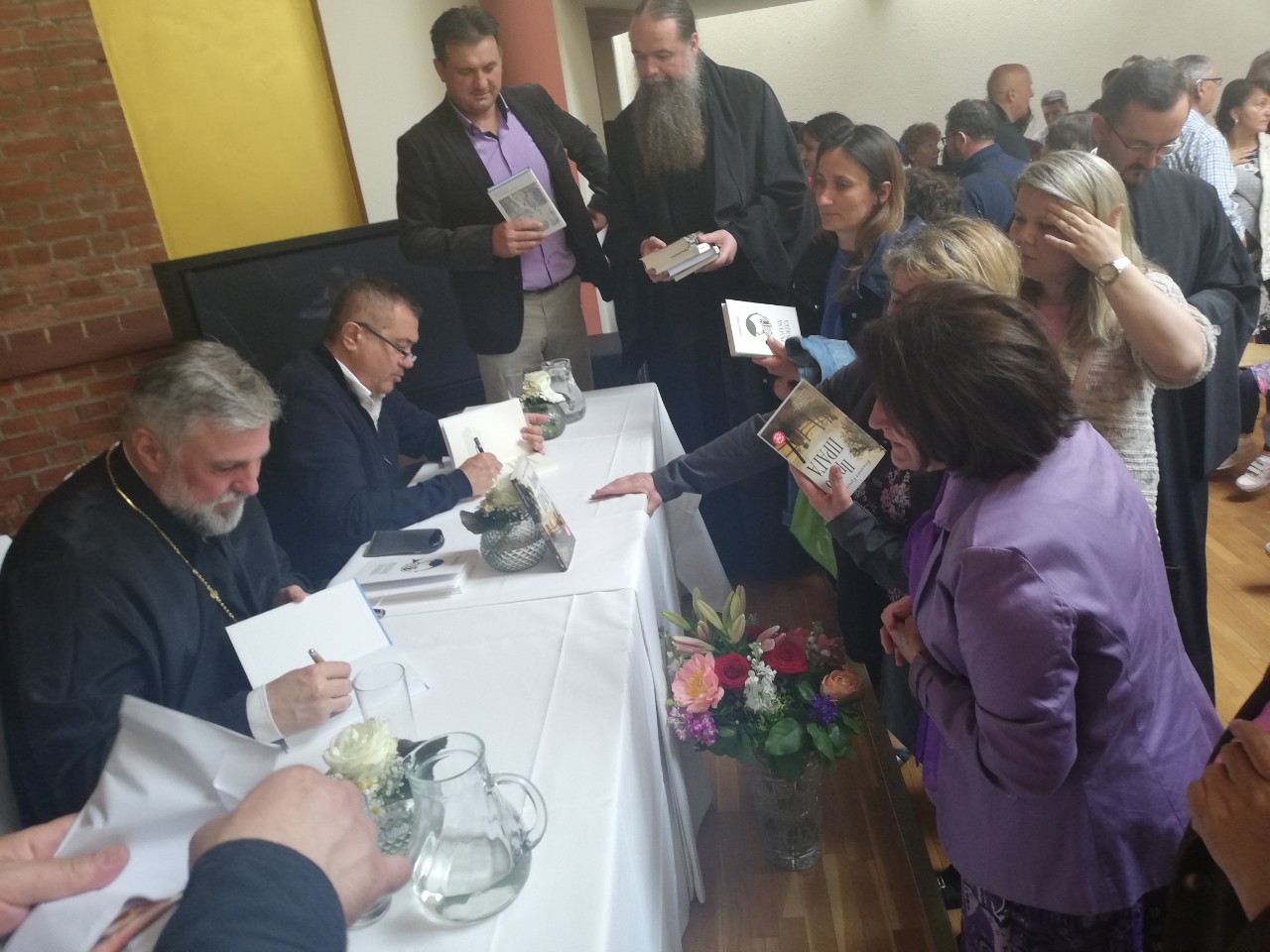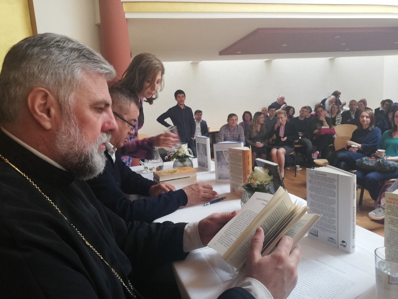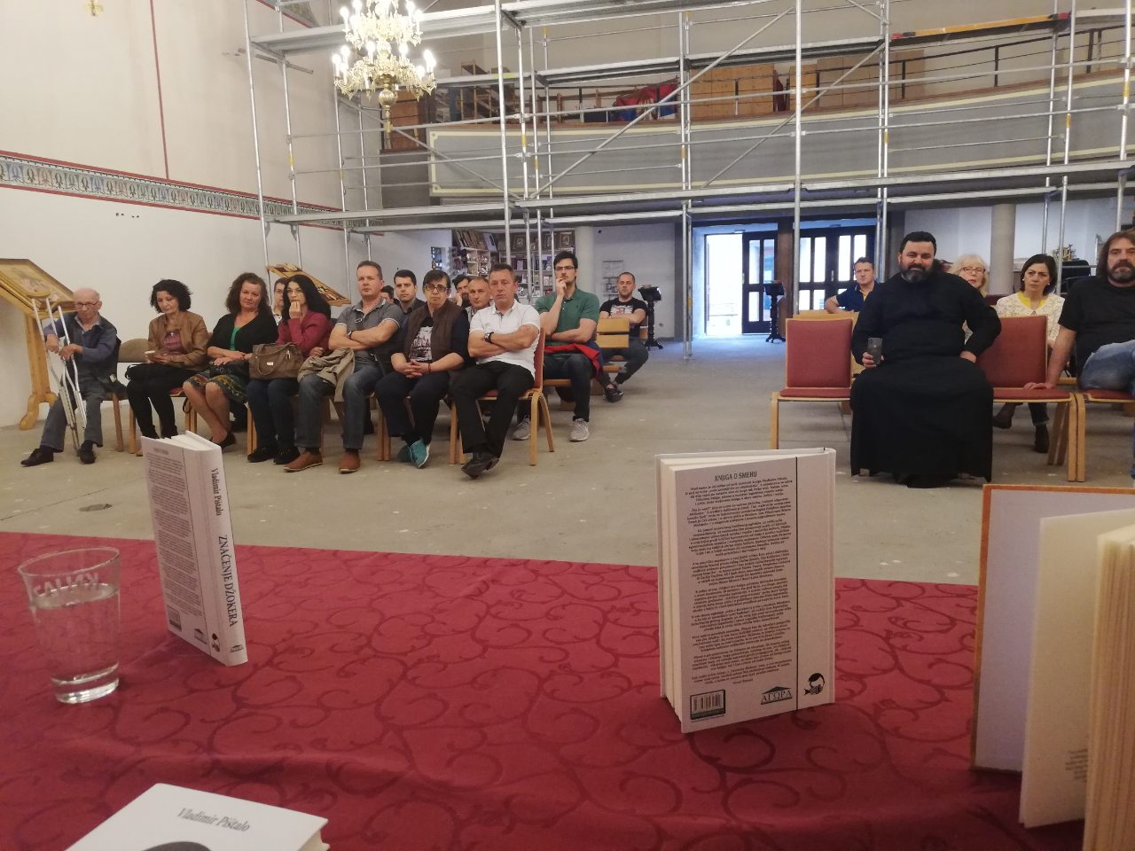 O ove dve knjige govorio je književnik Nenad Šaponja, dok su Vladimir Pištalo i vladika Grigorije vodili unakrsni dijalog – Pištalo je govorio o knjizi BITI S DRUGIM, a vladika Grigorije o ZNAČENJU DŽOKERA.